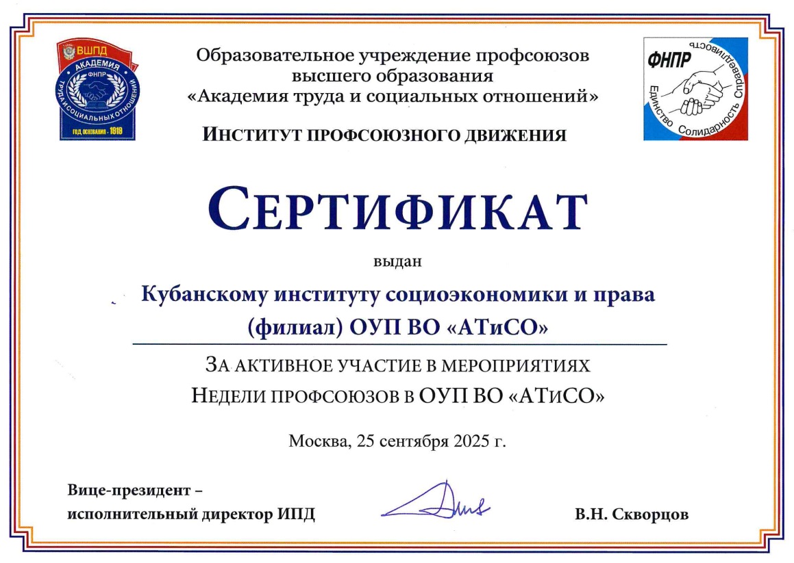 7 октября 2025 года директор КубИСЭП (филиал) ОУП ВО «АТиСО» Сергей Александрович Федоренко в качестве почётного гостя и члена Попечительского …
