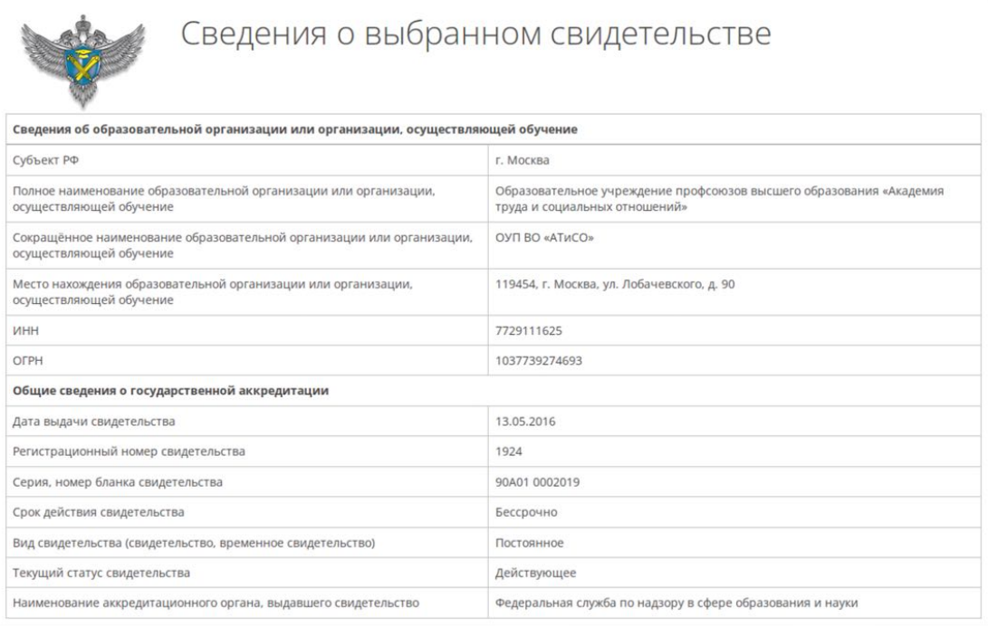 В соответствии с частью 16 статьи 136 Федерального закона Российской Федерации от 11 июня 2021 года № 170-ФЗ «О внесении изменений в отдельные законодательные акты Российской Федерации в связи с принятием Федерального закона «О государственном контроле (надзоре) и муниципальном контроле в Российской Федерации» государственная аккредитация Образовательного учреждения профсоюзов высшего — образования «Академия труда и социальных отношений» становится бессрочной.