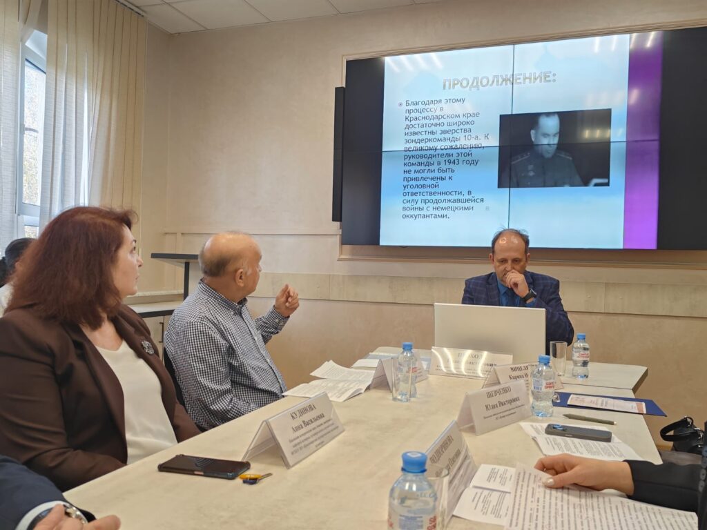 Доцент кафедры гуманитарных дисциплин, экономики и управления КубИСЭП (филиал) ОУП ВО «АТиСО», кандидат исторических наук, доцент Сергей Михайлович Сивков выступил с докладом «Воспоминания о подпольной молодёжной организации «Юный мститель» станицы Лабинской Краснодарского края: по материалам ГКУ «Центр документации».
