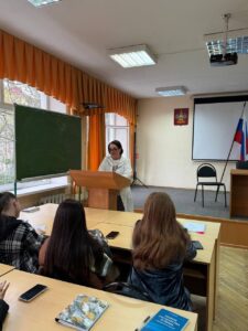 Тему вреда здоровью от употребления наркотических и психотропных веществ продолжила медицинский работник КубИСЭП (филиал) ОУП ВО «АТиСО» Елисеева Елена Ивановна. В своей беседе со студентами Елена Ивановна осветила факты медицинской практики втягивания в употребление наркотиков даже после разового употребления, а в последующем разрушения здоровья и личности уже в результате их систематического употребления. Привела примеры губительного воздействия употребления наркотиков на здоровье и нормальное развитие детей, рождающихся у родителей, употребляющих или даже употреблявших в прошлом наркотические вещества. Снижение когнитивных способностей и маргинализация личности, как неизбежные изменения в жизни потребителей наркотических веществ, были также описаны на примерах практики и результатах медицинских исследований.
