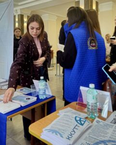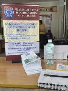 17 апреля 2026 года техническим секретарём по приёму в КубИСЭП (филиал) ОУП ВО «АТиСО» Голуб Е.В. была проведена профориентационная работа в рамках Всероссийской ярмарки трудоустройства «Работа России. Время возможностей» проводимой для учащихся 9-11 классов общеобразовательных организаций муниципального образования Северский район Краснодарского края. Посетителям ярмарки было рассказано о богатой истории Академии труда и социальных отношений, были предоставлены информационные буклеты КубИСЭП (филиал) ОУП ВО «АТиСО», продемонстрирован официальный сайт Академии и филиала, страница филиала в социальной сети в ВКонтакте. Предоставлена информация о преимуществах образовательных программ, реализуемых институтом, условиях поступления и обучения, а также о возможностях трудоустройства после успешного завершения обучения.